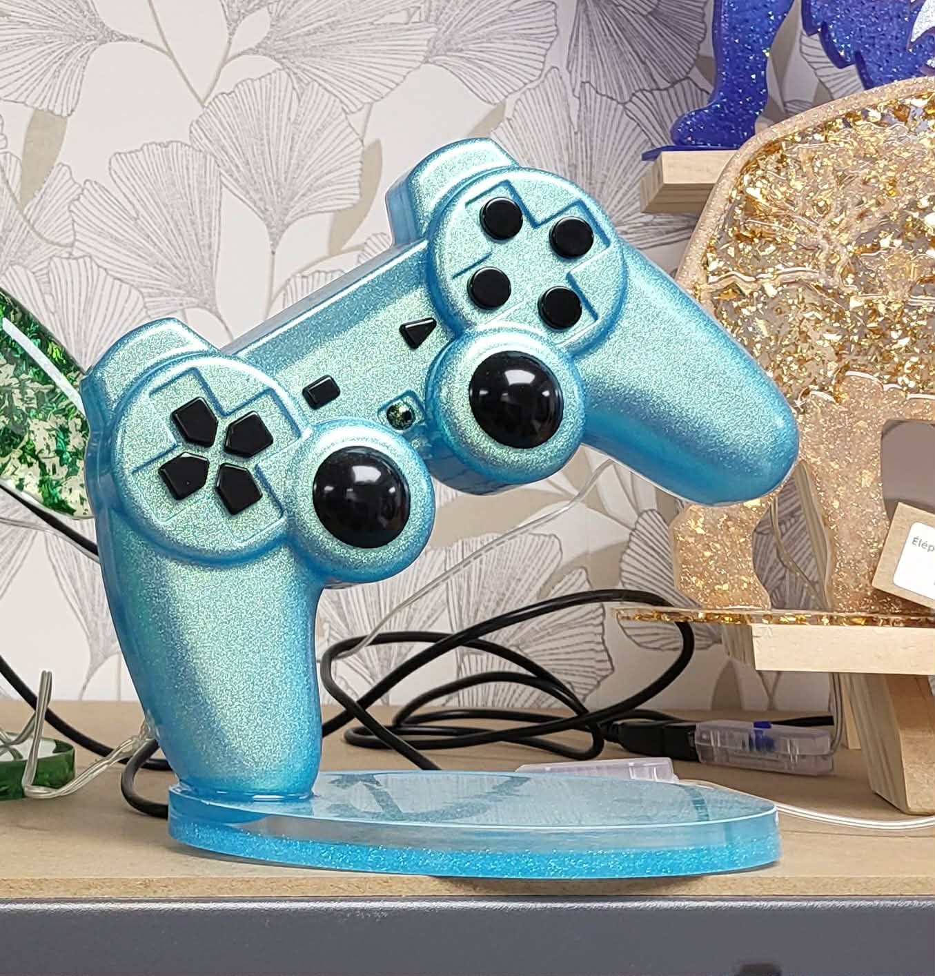 Manette bleu turquoise lumineuse led en résine époxy.